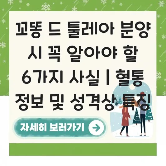 함께 읽으면 좋은 글: * 초보 보호자를 위한 꼬똥 드 툴레아 입양 준비 가이드 (출처: 꼬똥켄넬봉코) * 꼬똥 드 툴레아: 분양 전 꼭 알아야 할 모든 것 (출처: 꼬똥켄넬봉코)